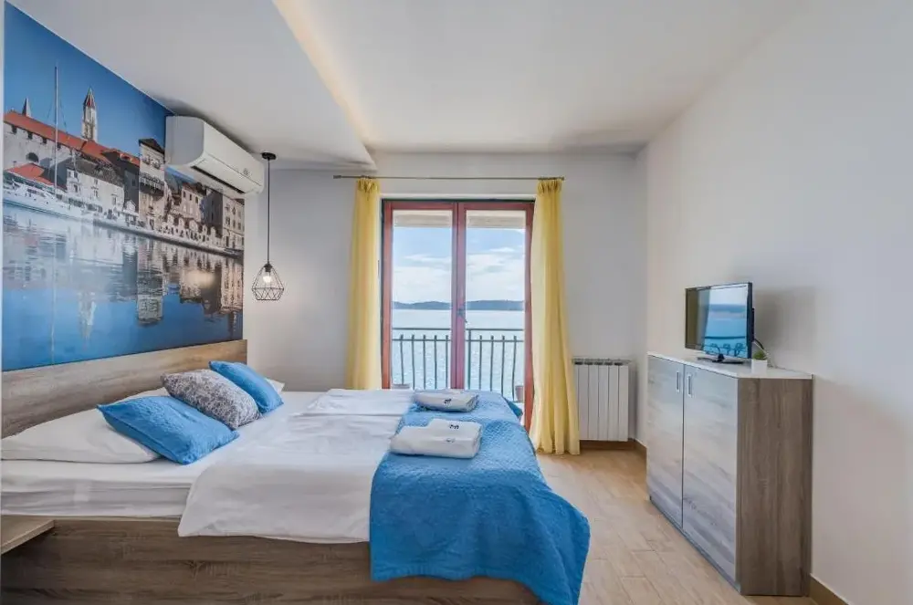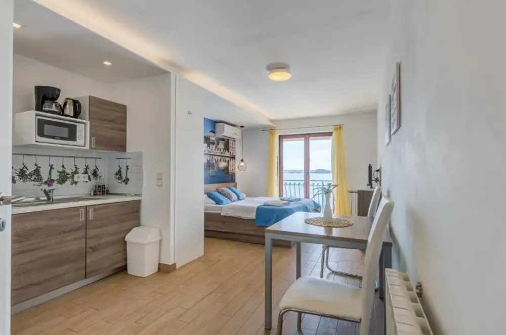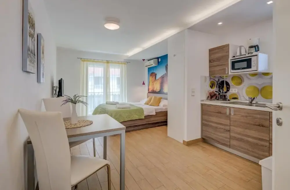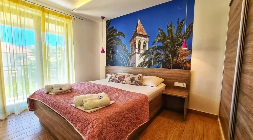 Die Apartments G in Seget Donji bieten eine moderne Ausstattung mit einer eigenen Bar und einer Terrasse zum Entspannen sowie einem Garten für private Momente. Gäste können kostenlosen Parkplatz nutzen oder direkt am Strand entspannen, der nur zwei Minuten zu Fuß entfernt liegt. Das Anwesen verfügt zudem über freies WLAN und einen Shuttle-Service zum Flughafen. In unmittelbarer Nähe befindet sich das historische Kamerlengo Castle, das in fünf Minuten Fahrt erreichbar ist, während der Spomenik Nob-A nach nur zwei Fahrminuten besichtigt werden kann. Der Split Airport liegt acht Minuten entfernt und bietet schnelle Anbindungen. Für Kaffeeliebhaber lohnt sich ein Besuch im Tinel Specialty Coffee Shop, der vier Autominuten entfernt ist.