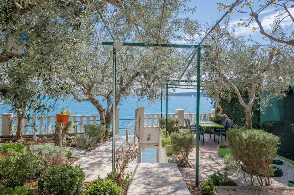 Ein wunderschöner Garten und, wenn man die Treppe hinuntergeht, ein privater kleiner Strand mit Atmosphäre.